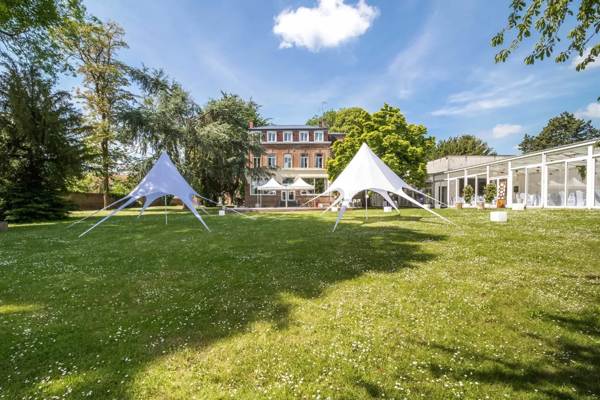 Our historic manor house is nestled in the heart of a beautifully preserved, shaded 3,300 m² park. Stroll in the shade of its majestic trees and enjoy the absolute tranquility of this haven of peace, just minutes from the major cities of the North.